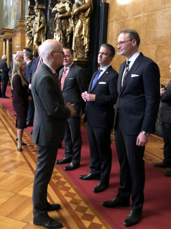 Rechtsanwalt Heiko Hecht, Honorarkonsul der Republik Armenien, im Gespräch mit dem 1. Bürgermeister der Freien und Hansestadt Hamburg im Kaisersaal des Rathauses. Anlass ist der jährliche Neujahrsempfang des Konsularkorps Hamburg.